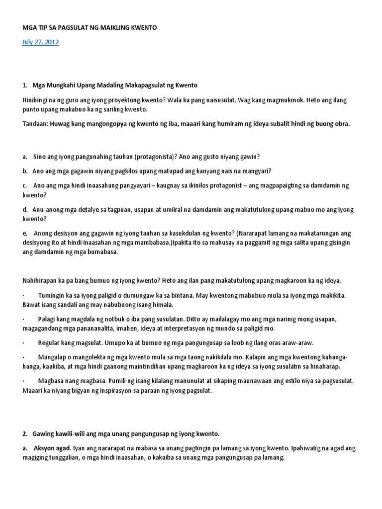Mga Tip Sa Pagsulat Ng Maikling Kwento