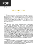 Ang Heneral Luna ay pelikulang pantalambuhay mula sa Pilipinas tungkol kay Antonio Luna na nagsilbing heneral ng hukbong Pilipino noong Himagsikang Pilipino at Digmaang Pilipino-Amerikano. Isang linggo na ang makalipas ng mapanood ko ang Heneral Luna ngunit damang-dama ko pa rin ang bawat linya at eksena. Ang aking pinanood ay pinamagatang Heneral Luna isang pelikulang nakatuon kay Heneral Antonio Luna simula noong pagbawi ng mga Amerikano sa mga Espanyol.