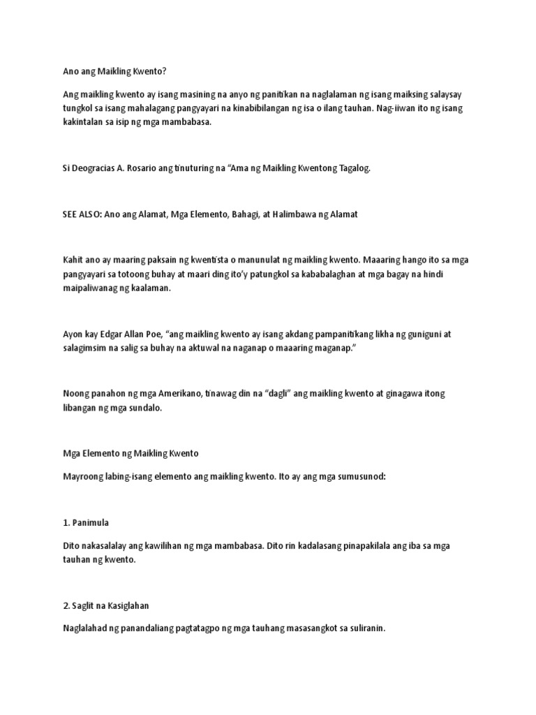 Maikling Kwento Mga Elemento Bahagi Uri At Halimbawa