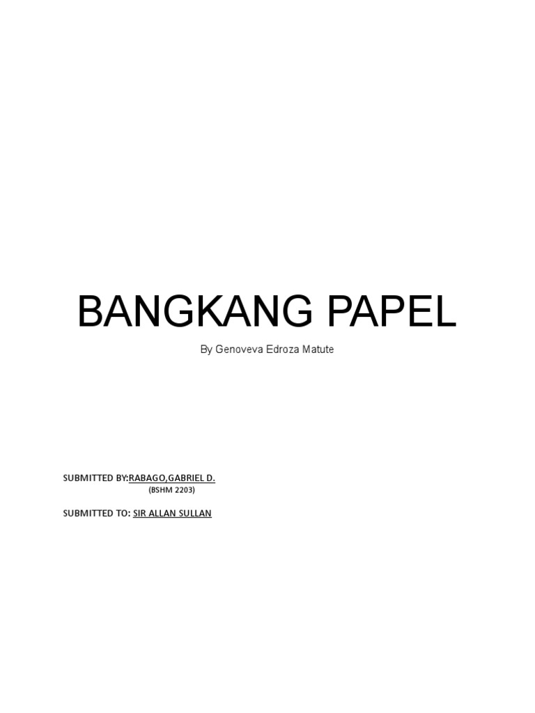 Bangkang Papel Buod Nag-umpisa ang kuwento sa pagbabalik-tanaw ng nagsasalaysay ng kuwento. Other questions on the subject. Opo nay tapusin ko lang po tong ginagawa ko wika ni Nonoy.