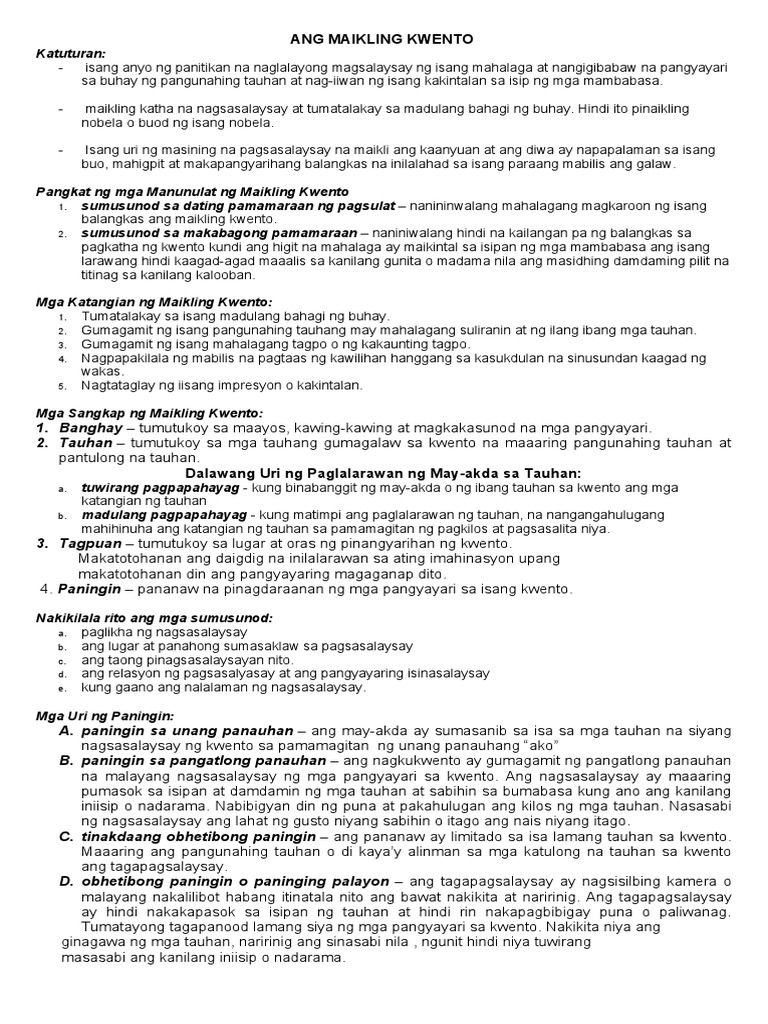 Some of the worksheets for this concept are filipino baitang 2 ikaapat na markahan filipino baitang 7 ikatlong markahan basic education filipino department holy angel university to 12 gabay pangkurikulum. Kwento ng Sikolohiko Ito ang uri ng maikling kuwentong bihirang isulat sapagkat may kahirapan ang paglalarawan ng kaisipan. Lance Francis Bautista VI - Banahaw Ano ang WAKAS ng isang Kwento Ano ang KWENTO Ito ay produkto ng malikhaing isip ng tao at naipapahayag ito sa pamamagitan ng pagususulat pagda-drama o sa pagsasa-pelikula.