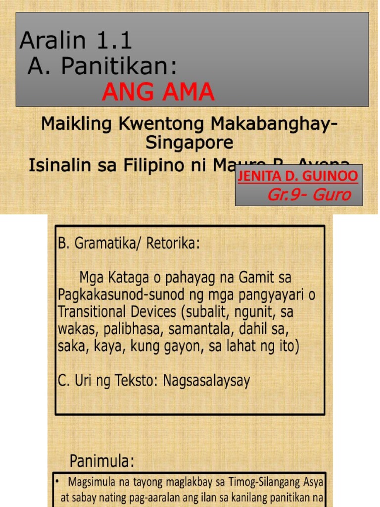 Ang Ama Maikling Kuwento Mula Singapore Isinalin Ni Mauro R Avena Asignaturang Filipino Youtube. Ano ang kasaysayan ng maikling kuwento ng singapore. Ano Ang Mga Ideya Sa Akdang Ang Ama Sagot MGA IDEYA SA AKDANG ANG AMA Ito ay isang maikling kwento na nanggaling sa Singapore na isinalin sa Tagalog ni Mauro R.
