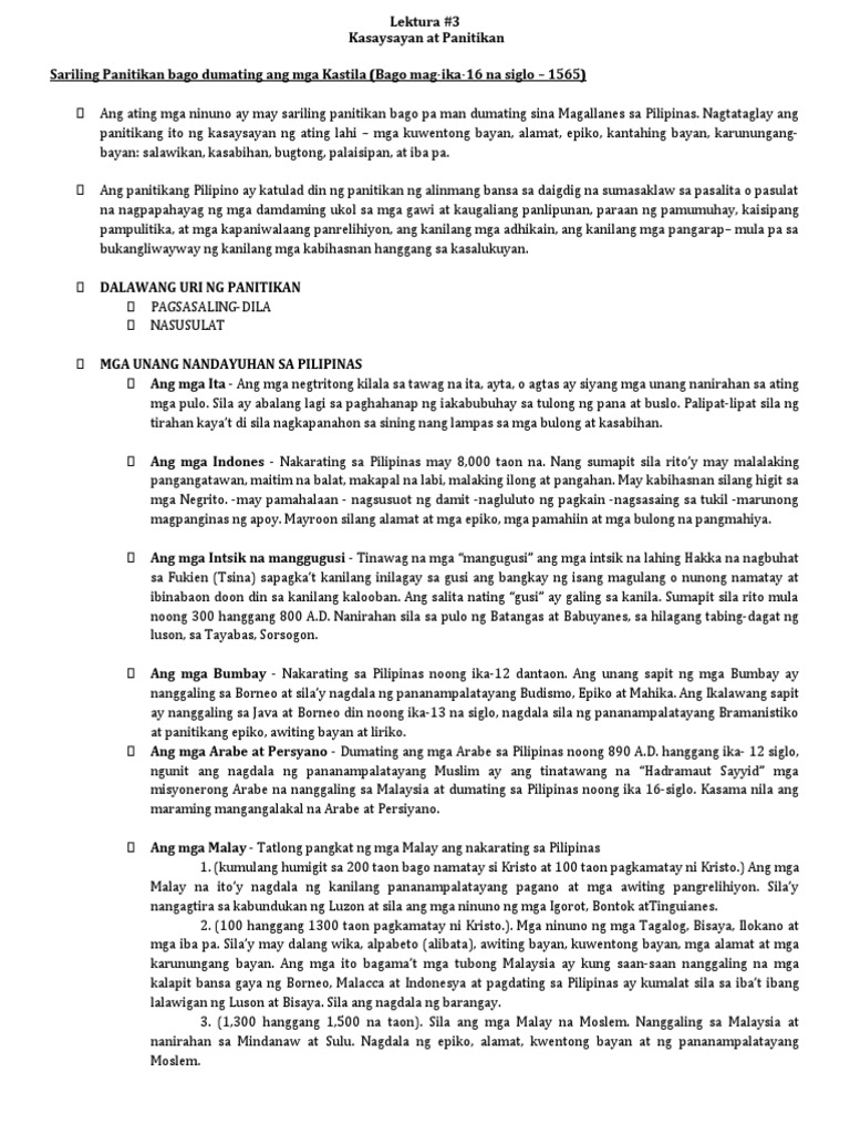 Lektura 3 Kasaysayan At Panitikan Pdf
