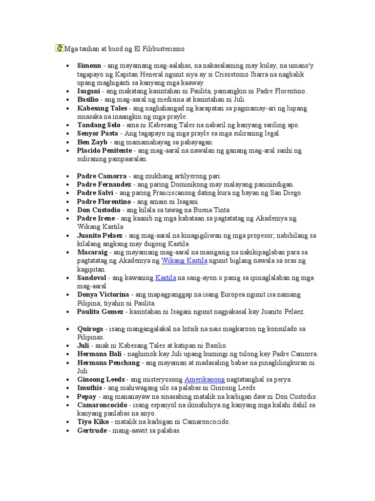 Mga Tauhan At Buod Ng El Filibusterismo Pdf